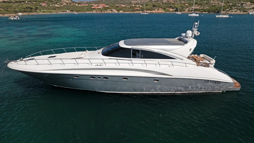 The yacht combines speed, design, and functionality, which makes it ideal for both day charters and extended cruising itineraries. With the ability to reach impressive speeds while maintaining stability and comfort, guests can travel easily between beaches, islands, and hidden coves throughout northern Sardinia.