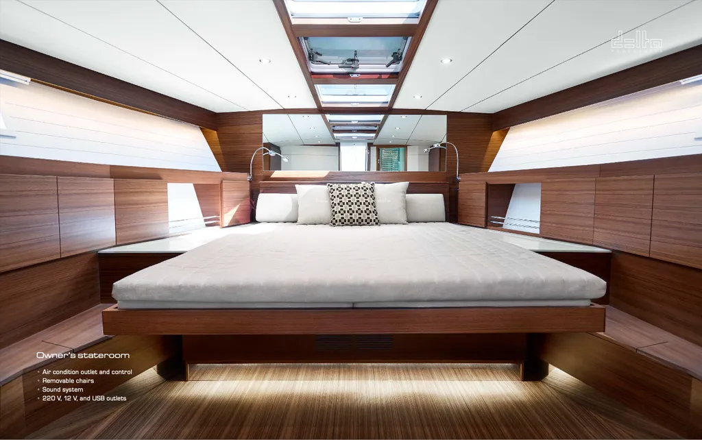 The Delta 60 yacht charter Porto Cervo highlights the minimalist elegance of Scandinavian design. First, the exterior profile reflects a clean and modern aesthetic that emphasizes performance and functionality.