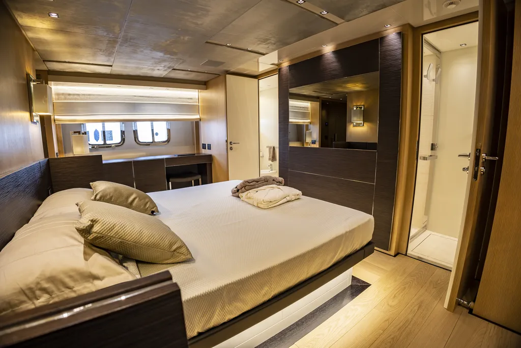 The San Lorenzo 96 Charter Porto Cervo accommodates families comfortably thanks to its thoughtful cabin configuration. The master suite offers privacy for primary guests, while the additional cabins provide adaptable sleeping arrangements for children or friends.